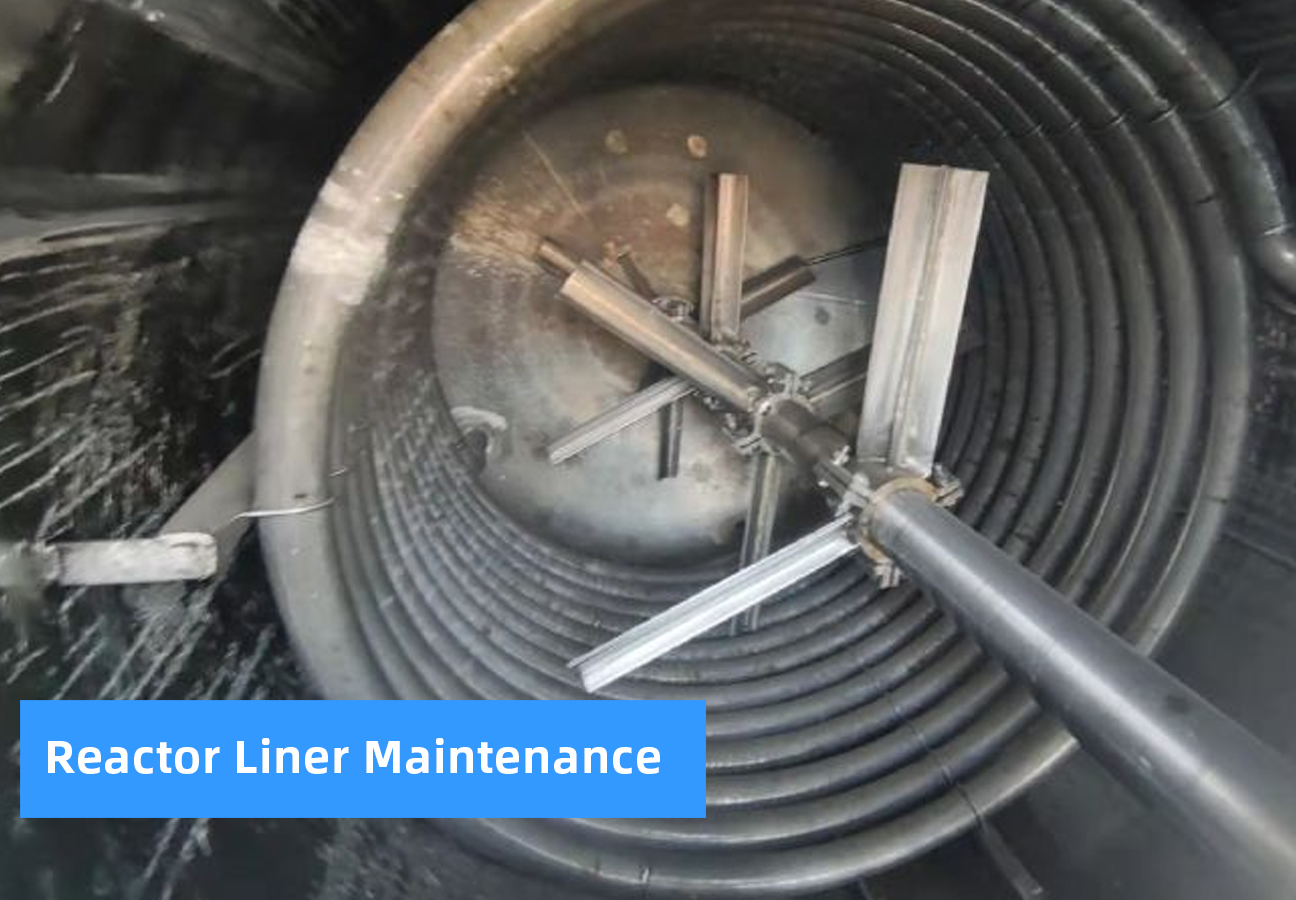 • High Pressure: The force generated by UHP water jets is sufficient to break up and wash away tough contaminants without damaging the reactor liner.